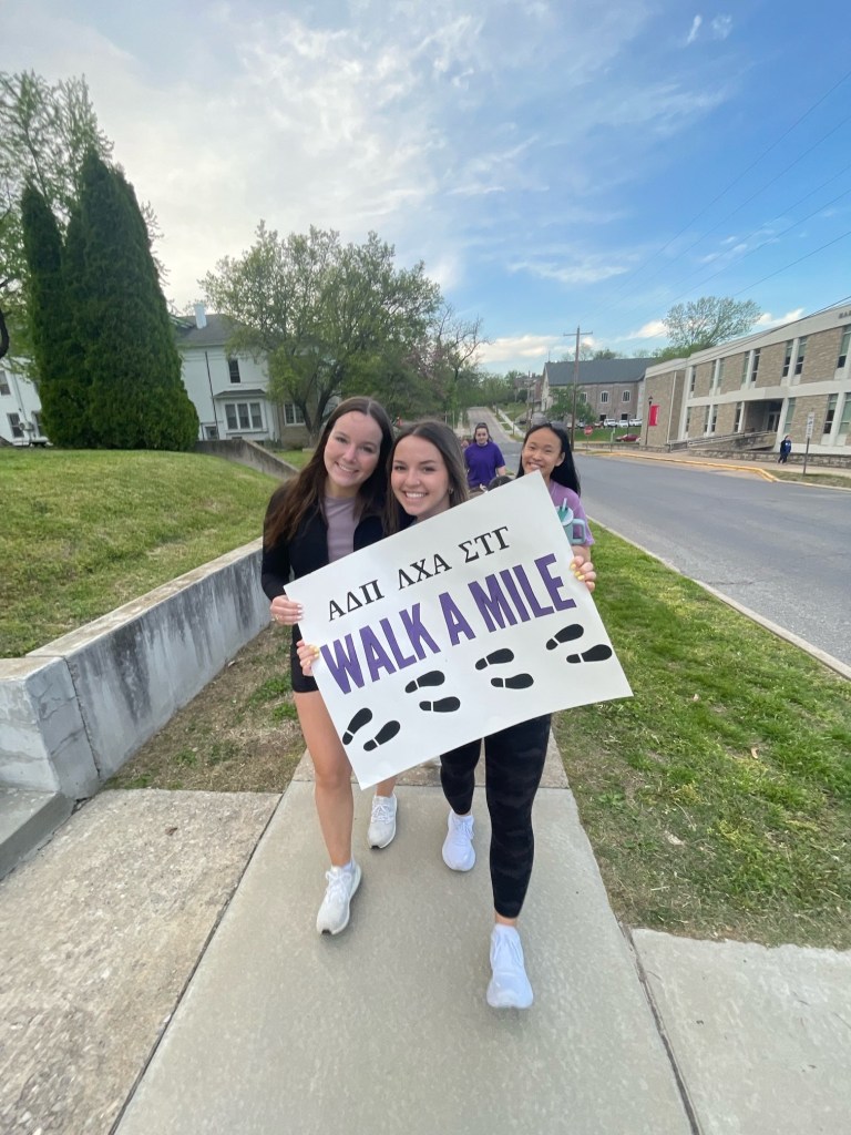 Walk-a-Mile is an event held during Greek Week that the entire Greek Community participates in. This event is held to raise awareness for domestic violence and sexual assault. During this event, men in the Southeast campus community wear high heels and walk a mile around campus while the rest of the community follows. Alpha Delta Pi is proud to participate in this event that raises awareness of an issue so important to us all.